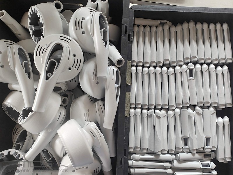 Nello stesso ciclo di investimento abbiamo integrato un nuovo macchinario per la tintura automatica per impregnazione, che permette di conferire ai particolari stampati in 3D MJF un colore nero uniforme e un aspetto significativamente più rifinito.